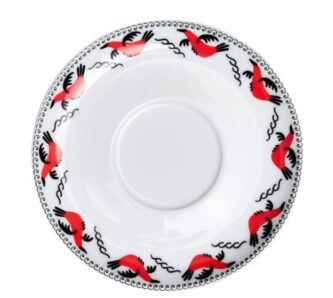 Блюдце Башкирский фарфор Мезень Принц Гуси D 145 мм, H 18 мм белое, красное артикул ИБЛ 03.145.Д1302:02