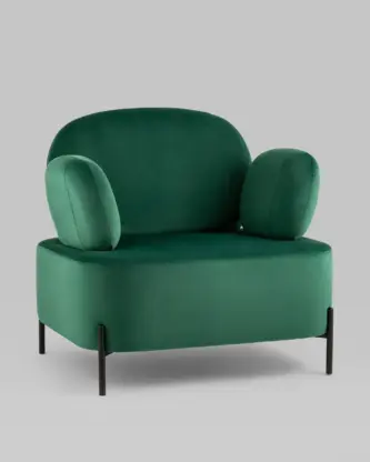 Кресло Кэнди с подлокотниками низкое велюр зелёный
