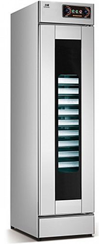 Расстоечный шкаф – это аппарат для расстойки теста перед непосредственным выпеканием. Он очень удобен в использовании в ресторанах, кофейнях, хлебопекарнях и детских учреждениях. Его конструкция состоит из нескольких элементов: корпуса с дверцами, уровней для противней, ванночек для воды, панели управления и регулировки. Внутри камеры находится термостат, который контролирует температуру и влажность. Оптимальная температура для расстойки – не выше 50 °C, но нагрев может достигать до 90 °C Для равномерного распределения воздуха по камере установлен вентилятор. Все современные модели оснащены системой пароувлажнения. Таким образом создается оптимальный режим для качественной и быстрой расстойки.