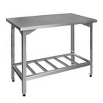 Варианты исполнений разделочного стола: с бортом или без борта; со сплошной полкой, перфорированной полкой, решеткой или обвязкой; с полкой нерж. стали, оцинкованной стали или окрашенной стали.