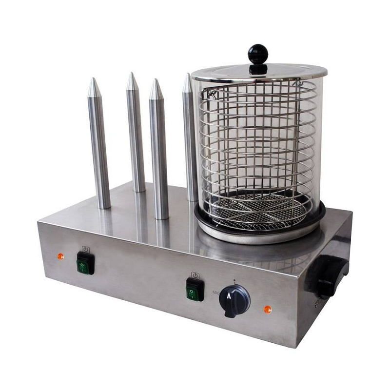 Аппарат для хот-догов AirhotHDS-04используется в кафе, бистро, в стационарных и передвижных точках быстрого питания для приготовления хот-догов. Аппарат устанавливается настольно, имеет ёмкость для воды, над которой устанавливается цилиндр, внутри него сосиски готовятся на пару. Для подогрева булочек имеются 4 штыря. Данная модель позволяет быстро готовить сосиски, подогревать булочки и поддерживать их в горячем состоянии длительное время.