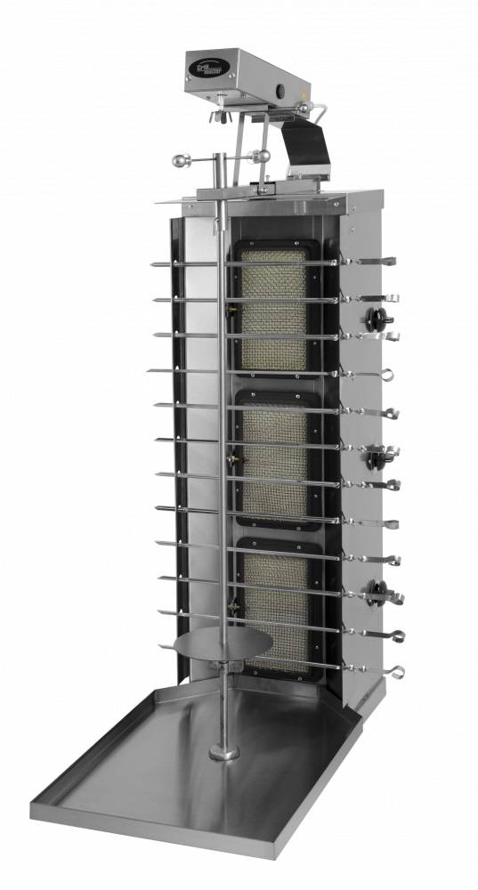 Гриль для шаурмы GRILL MASTER Ф3ШмГ(у)профессиональный аппарат для настольной эксплуатации в заведениях общепита: ресторанах и кафетериях, а также заведениях фаст-фуда и уличных киосках восточной кухни. Для поджарки маринованного мяса и приготовления шашлыка или мяса для шаурмы.