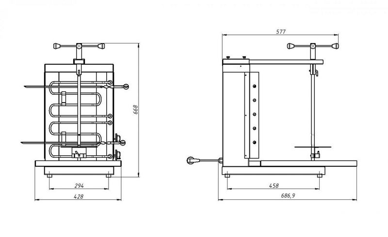 Гриль для шаурмы GRILL MASTER Ф2ШМЭ– оборудование для бесконтактной жарки мяса или овощей. Устанавливается, преимущественно, на кухнях кафетериев и ресторанов, заведений фаст-фуда, также может эксплуатироваться в открытых летних кафе (установка под навесом) и киосках уличной торговли.