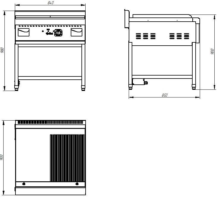 - жарочная поверхность выполнена из чугуна, гладкая поверхность комбинируется с рифленой (площадь — 0,59 м2, размер — 834×703 мм)