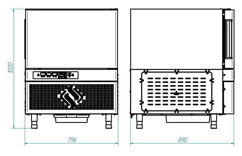 За быстрое и равномерное охлаждение всего объема отвечает воздухоохладитель с вентилятором.Шкаф шоковой заморозки ШОК-4-1/1отличается небольшой вместительностью — 12 кг продукта, 4 уровня противней. Для увеличения производительности кухни производитель рекомендует использовать этот аппарат совместно с пароконвектоматом для быстрого восстановления блюд и разморозки полуфабрикатов с без потери качества продукта. Подойдут модели пароконвектоматов, адаптированные под противни 600х400 мм или гастроемкости GN 1/1.