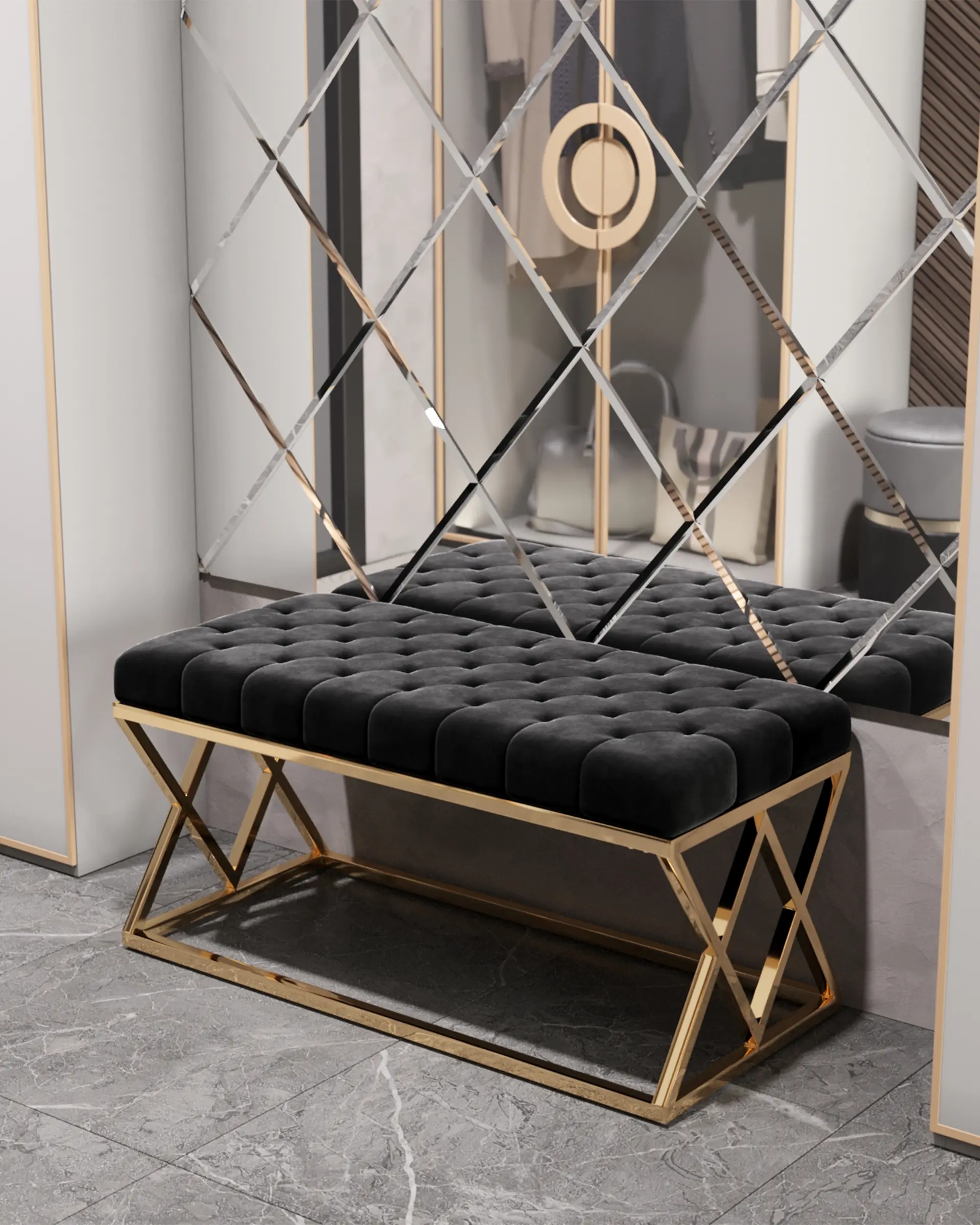 Изящная банкетка с мягким сиденьем станет прекрасным дополнением интерьера спальни, зала или прихожей.
