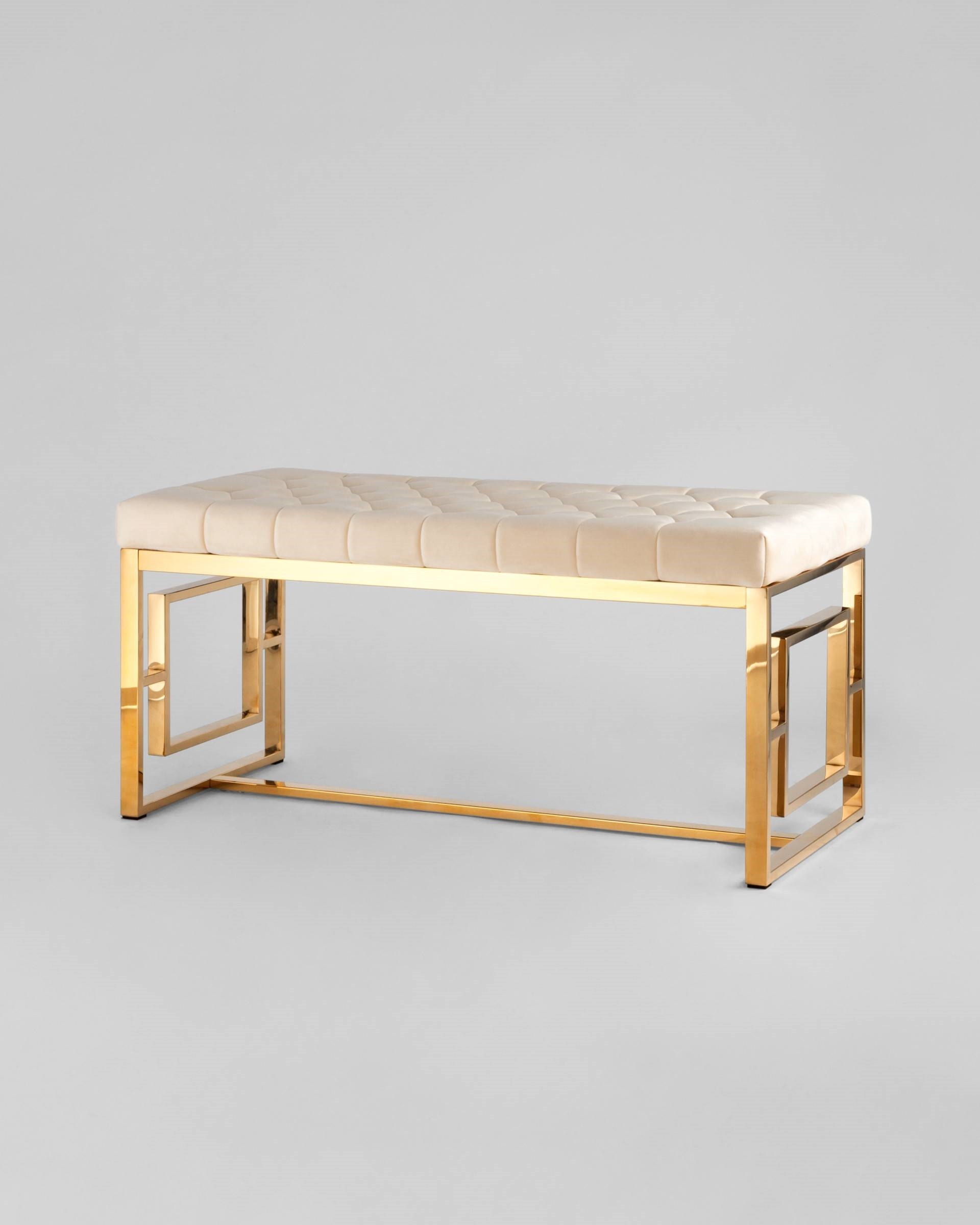 Банкетка-скамейка БРУКЛИН велюр бежевый сталь золото