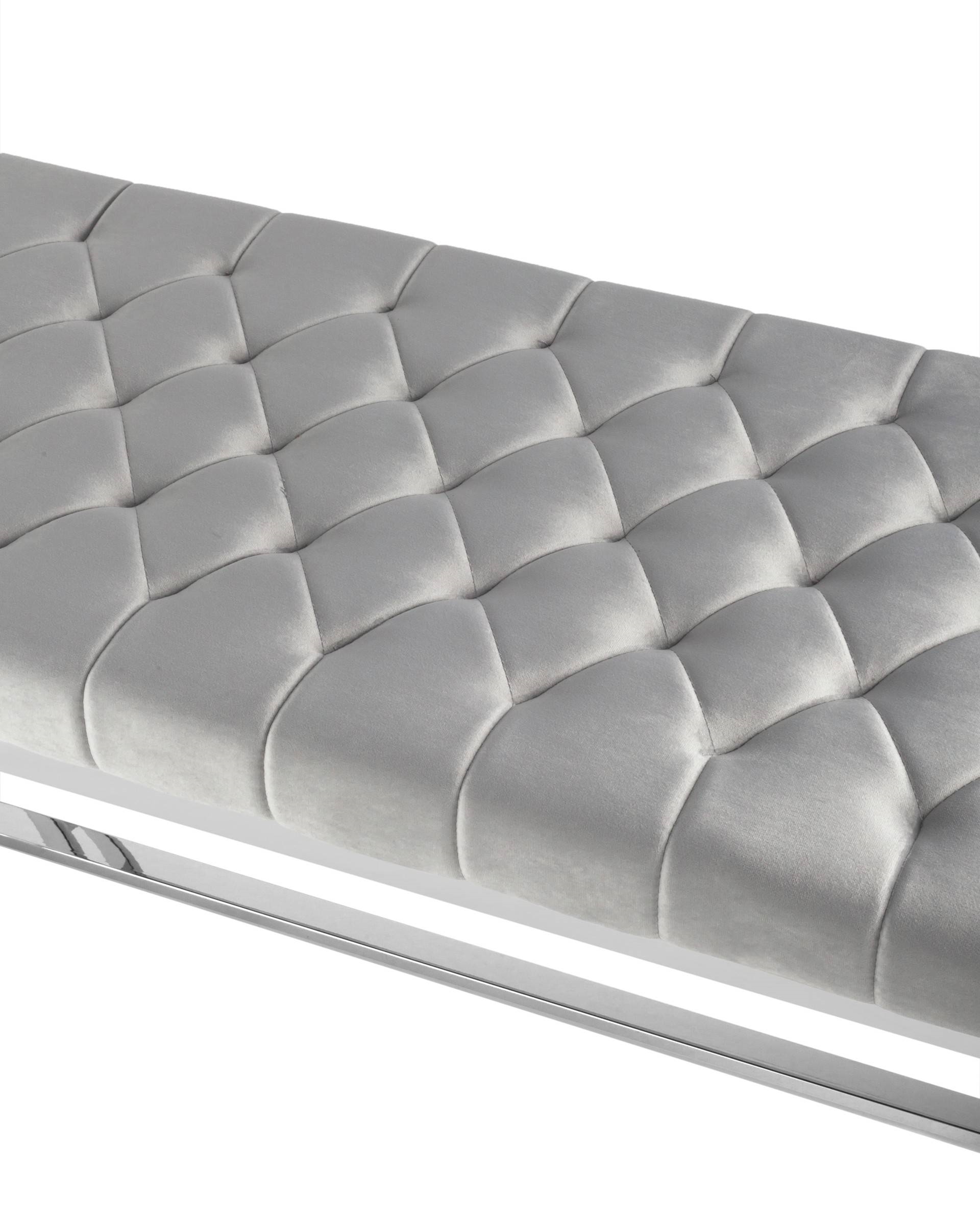Банкетка-скамейка БРУКЛИН велюр серый сталь серебро