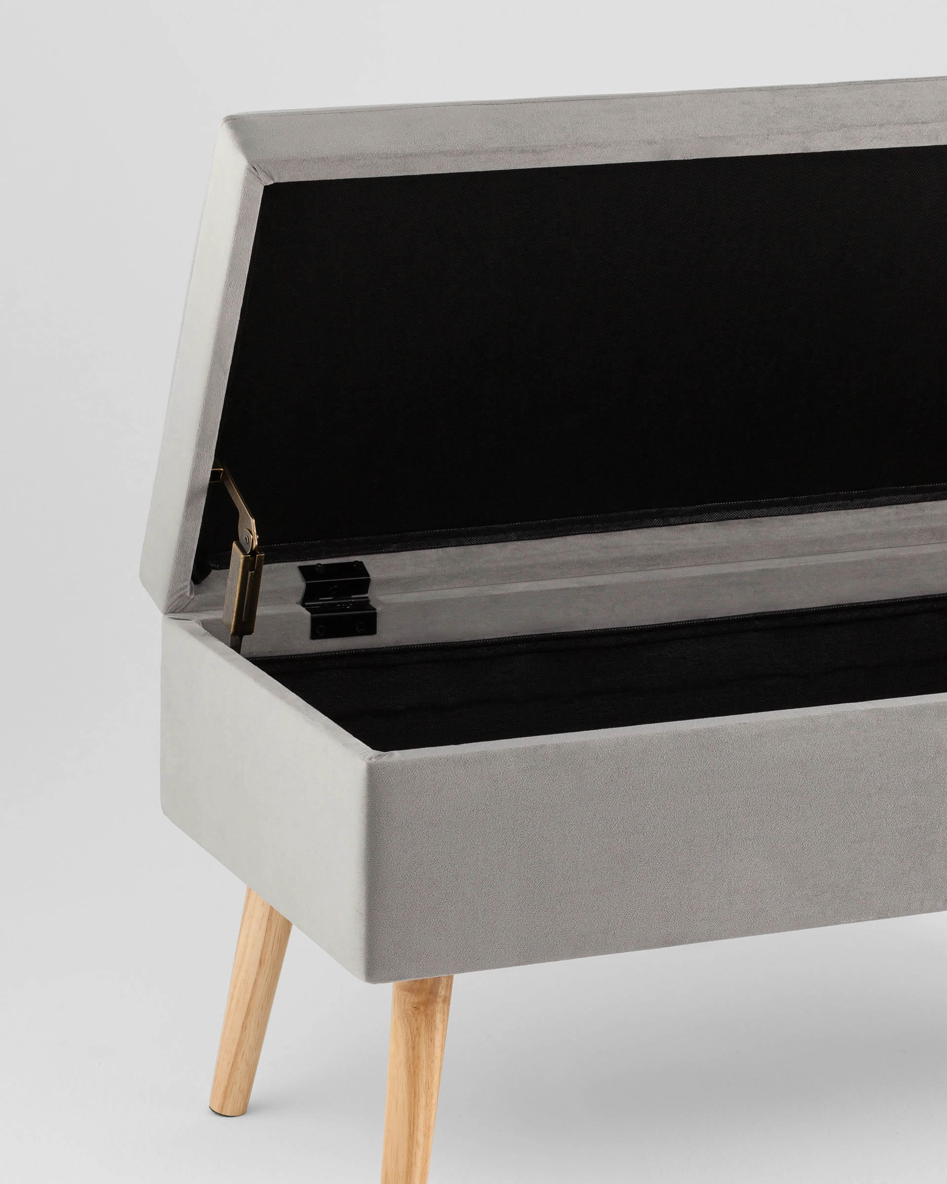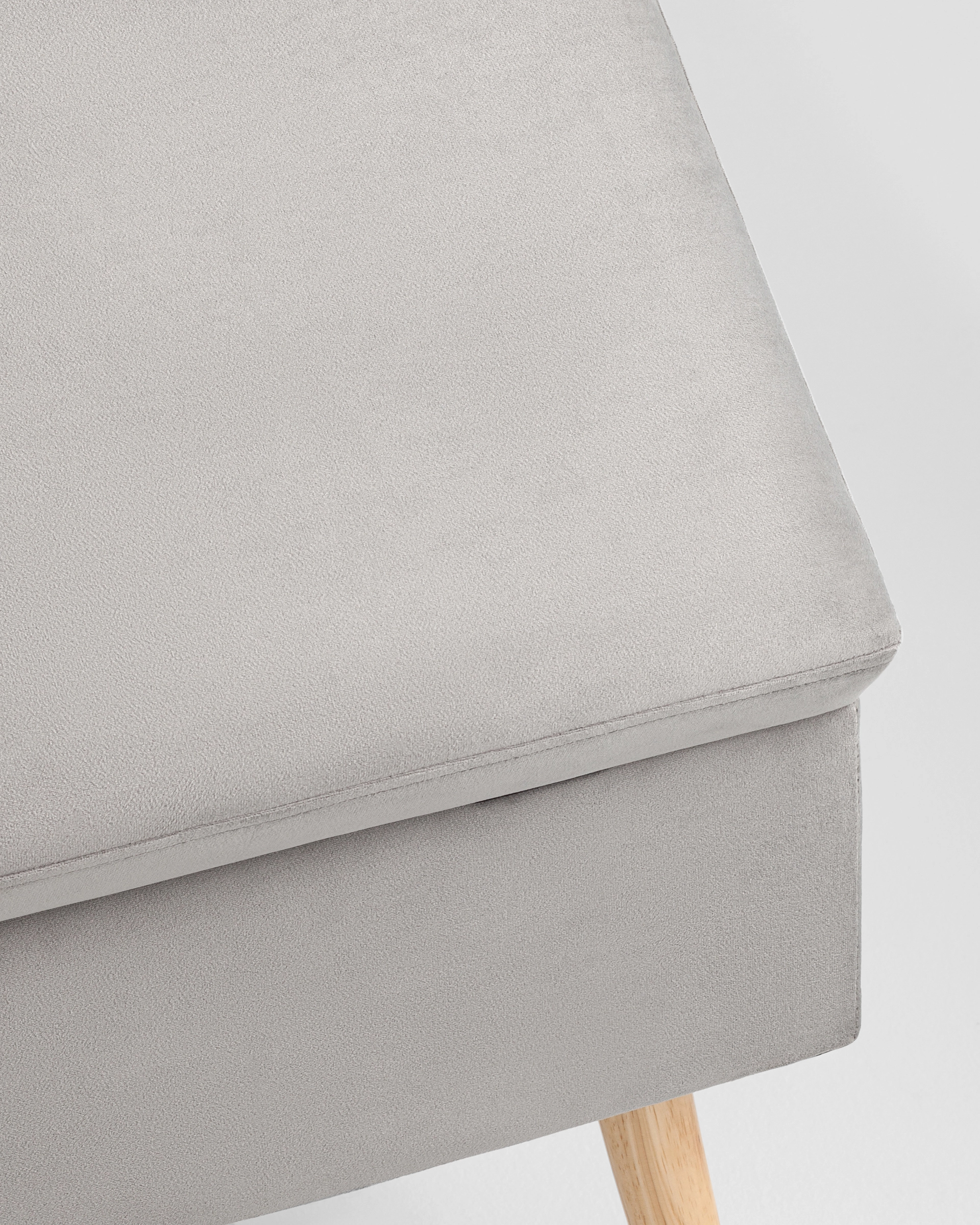 Основание изготовлено из массива дерева, поэтому легко выдерживает нагрузку до 150 кг. Деревянные ножки оснащены накладками, которые защитят пол от царапин и лишнего шума при передвижении скамейки-пуфа.
