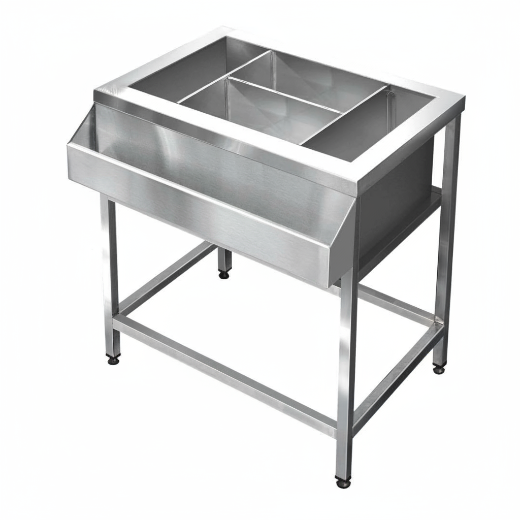 Комплектация: полка накопитель для бутылок с напитками 800 мм несъемная, сварная моечная ванна 700х400х250 мм со съемыми перегородками (3 шт).