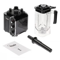 В аппарате предусмотрено 6 программ. Регулятор позволяет задать скорость вращения в диапазоне от 28000 до 35000 оборотов в минуту. Корпус выполнен из прочного пластика черного цвета. На нем установлена рабочая емкость объемом 2,2 литра, оснащенная крышкой и мерным стаканчиком. Она выполнена из прочного и термостойкого материала тритана. Измельчение продукта производится ножом с 6 лезвиями, выполненным из нержавеющей стали.