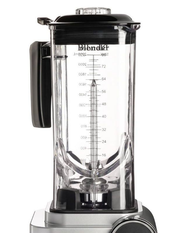 Корпус блендера изготовлен из прочного пластика. На нем установлена рабочая емкость, вмещающая 2,2 литра, оснащенная крышкой и мерным стаканчиком. Для изготовления резервуара используется материал тритан, отличающийся высокой прочностью и устойчивостью к температуре.