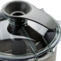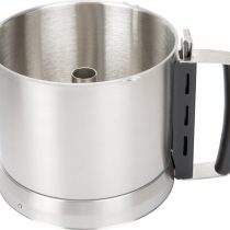 Бликсер укомплектован скребком для очищения стенок и крышки от остатков пищи. Перед работой скребок устанавливается в чашу и через отверстие в крышке крепится к ней специальной втулкой. Втулка одновременно работает как зажимной механизм для скребка и воронка для добавления ингредиентов в процессе перемалывания.