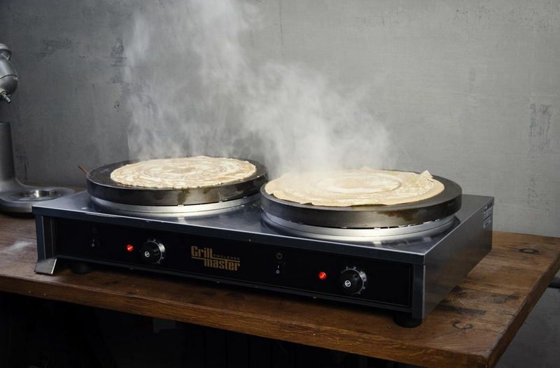 Блинница GRILL MASTER Ф2БЭ/400 мм– профессиональное тепловое оборудование, предназначенное для применения в заведениях общественного питания и объектах торговли. С помощью этого устройства можно жарить оладьи и блины. Оно является идеально подходящим для эксплуатации в небольших кафе, бистро и заведениях типа фаст-фуд. Абсолютный аналог известнейшей французской компании Krampouz, специализирующейся на производстве блинных аппаратов. Особая конструкция прочного корпуса из нержавеющей стали и интеграция в жарочные диски спиралей исключает потери тепла, гарантирует высочайшую равномерность нагревания и позволяет поддерживать одинаковую температуру на всей поверхности новой блинницы. Точная система контроля за температурой во время приготовления гарантирует эталонное приготовление всех блинчиков.