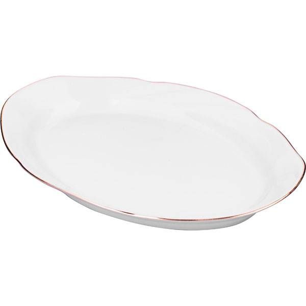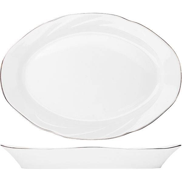 Блюдо Добрушский фарфоровый завод «Голубка» овальное; 350мл; L33, B23,5см, фарфор, белый, золотой артикул 0C0865