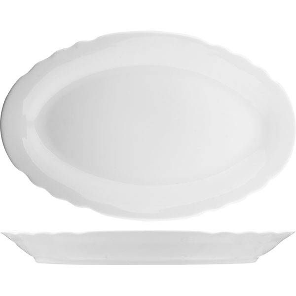 Блюдо Дулево овальное фигурный край; 0,9л; H40, L365, B225мм, фарфор, белый артикул 03838