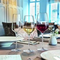 Бокал обладает устойчивым широким основанием, тонкой высокой ножкой, плавно переходящей в удлиненную чашу. Чаша сужается кверху, что позволяет аромату вина дольше сохраняться. Бокалы изготовлены из стекла Kwarx, отличающегося высокой прочностью, прозрачностью и блеском после многоразового мытья в посудомоечной машине.