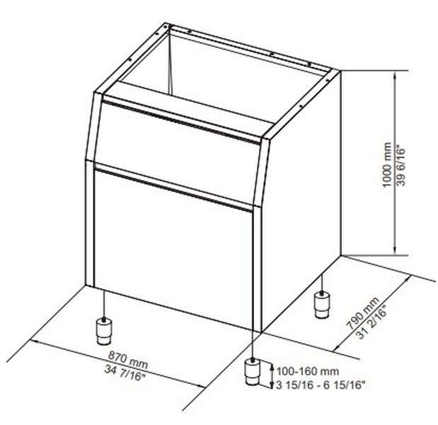 Бункер BIN 200*G160-280-510-TMпредназначен для накопления и хранения льда. Корпус изготовлен из нержавеющей стали с крышкой из пластика scotch brite, внутренняя отделка из пищевого полиэтилена. Бункер предназначен для льдогенераторов: G160, G280, G510, G510 Split, G700 Split CO2, TM140, TM250, TM450.