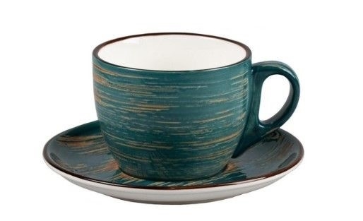 Чайная пара Texture Dark Green Lines 300 мл, 10 см, h 7,5 см, P.L. Proff Cuisine 53597+53598 кор=24/6