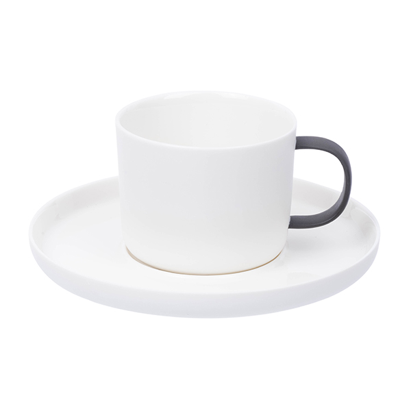 Кофейные чашки доступны в двух вариациях — с белой или черной ручкой, создающей контраст с основным цветом изделия. Этот небольшой штрих придает коллекции выразительность и характерный стиль. При выборе блюдца можно остановится как на белом, так и на черном цвете.