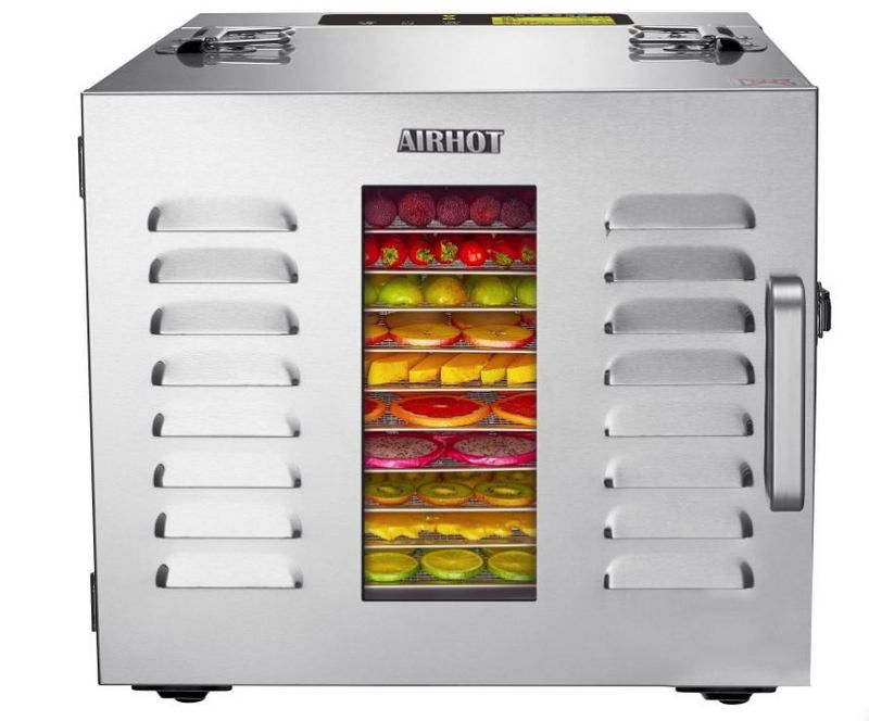 AIRHOT FD-10Nпредставляет собой дегидратор. Устройство предназначено для сушки овощей, фруктов, грибов, ягод. Модель относится к профессиональному классу, обеспечивает равномерное просушивание. В аппарате присутствует система регулировки температуры в диапазоне от 20 до 90 °С. В камере установлено 10 решеток для раскладки продуктов. В качестве материала изготовления корпуса применяется нержавеющая сталь.