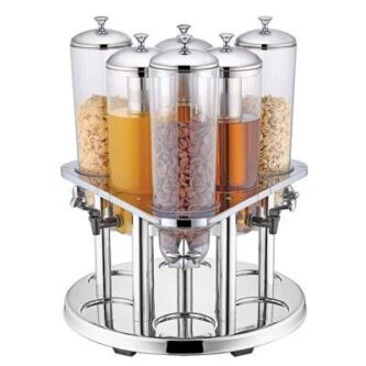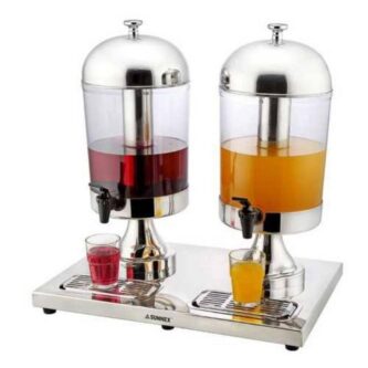 Диспенсер для сока Sunnex 5000 мл. H 522 мм. L 431 мм. B 385 ммпредназначен для оснащения торговых точек, отелей, пунктов общественного питания. Модель подходит для подачи и розлива сока и прочих напитков. В конструкции две емкости, что позволяет разливать напитки. Розлив осуществляется с помощью нажимных кранов. Диспенсер оснащен подставкой под стаканы с каплесборником.