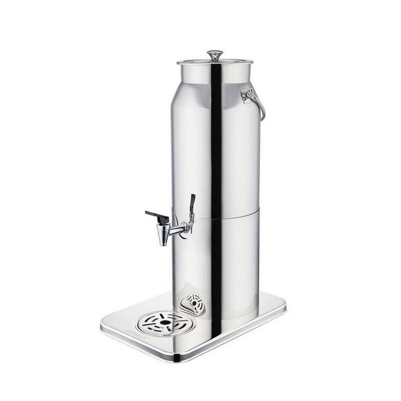 Диспенсер для напитков P.L. Proff Cuisine 5 лвыполнен из прочной стали. Изделие подходит для оснащения пунктов общественного питания, торговых точек. Аппарат подходит для розлива сока и прочих напитков. Конструкция полностью выполнена из нержавеющей стали. Металл отличается высокой прочностью, устойчивостью к коррозии. В конструкции предусмотрена емкость на 5 литров, на которой установлена крышка с наклонной рукояткой. Для розлива напитков используется кран с нажимным механизмом. Подставка оснащается каплесборником.