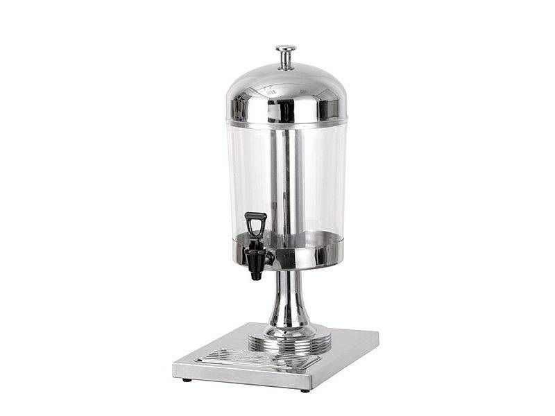 EKSI 90512представляет собой диспенсер для розлива сока и прочих напитков. Модель отлично подходит для применения в пунктах общественного питания, торговых точках, а также при организации выездных мероприятий. Для розлива на корпусе аппарата установлен кран. Емкость для напитков вмещает 8 литров, она выполнена из безопасного, но прочного поликарбоната. Корпус диспенсера произведен из металла. На подставке предусмотрено место для установки посуды (стаканов, чашек).