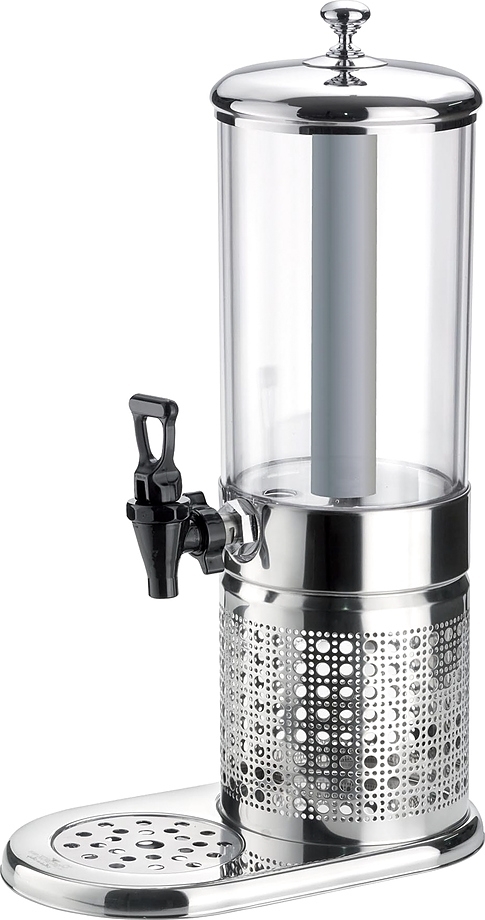 Pintinox 50955416 представляет собой диспенсер, предназначенный для розлива сока, охлаждаемых напитков. Модель отлично подходит для оснащения пунктов общественного питания с системой самообслуживания, торговых точек, она может использоваться при организации банкетов со шведским столом и выездных мероприятий. Корпус изделия выполнен из стали, на подставке диспенсера предусмотрено посадочное место для установки посуды. Емкость для напитков рассчитана на 3,5 л. Она выполнена из прочного, но безопасного поликарбоната. Для розлива на корпусе установлен краник с нажимной ручкой.