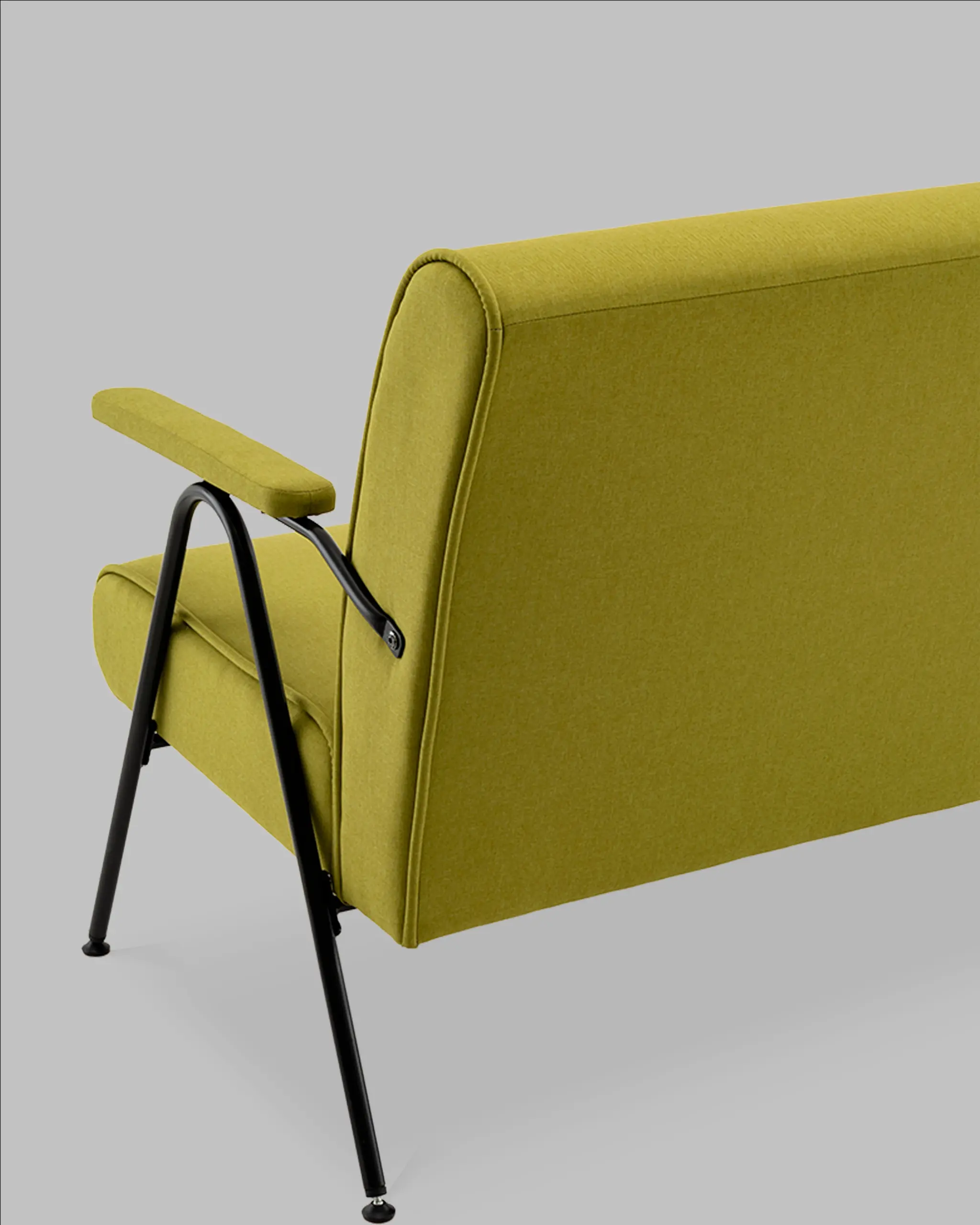 Современный дизайн в духе минимализмаДиван Эндино создан для тех, кто ценит стиль и практичность. Его строгие линии, чёрные металлические ножки и обивка из прочной рогожки в цвете лайм идеально вписываются в интерьер в стиле лофт, минимализм или современная классика. Плавные изгибы подлокотников и мягкие формы сиденья придают модели визуальную лёгкость, сохраняя при этом надёжность и функциональность.