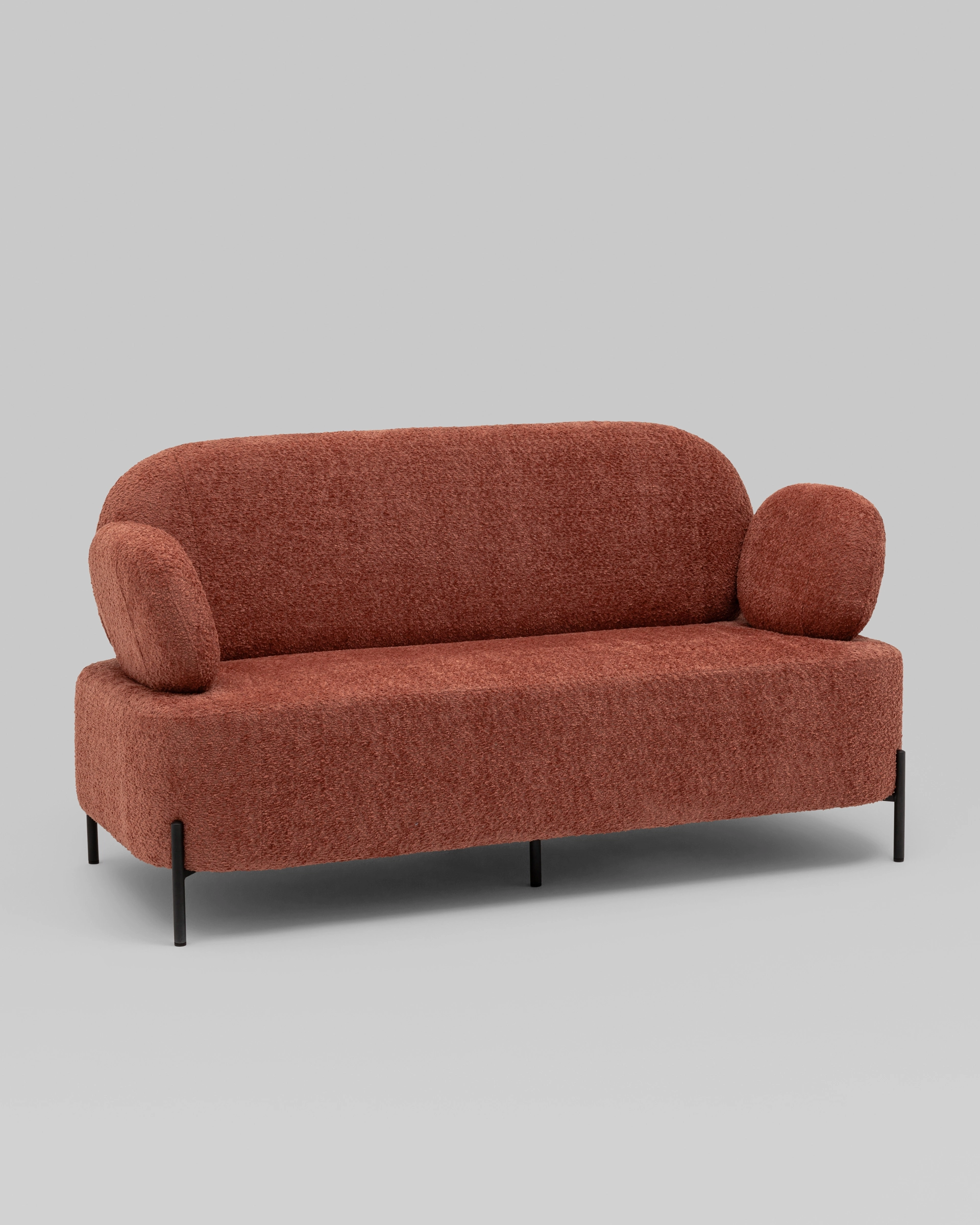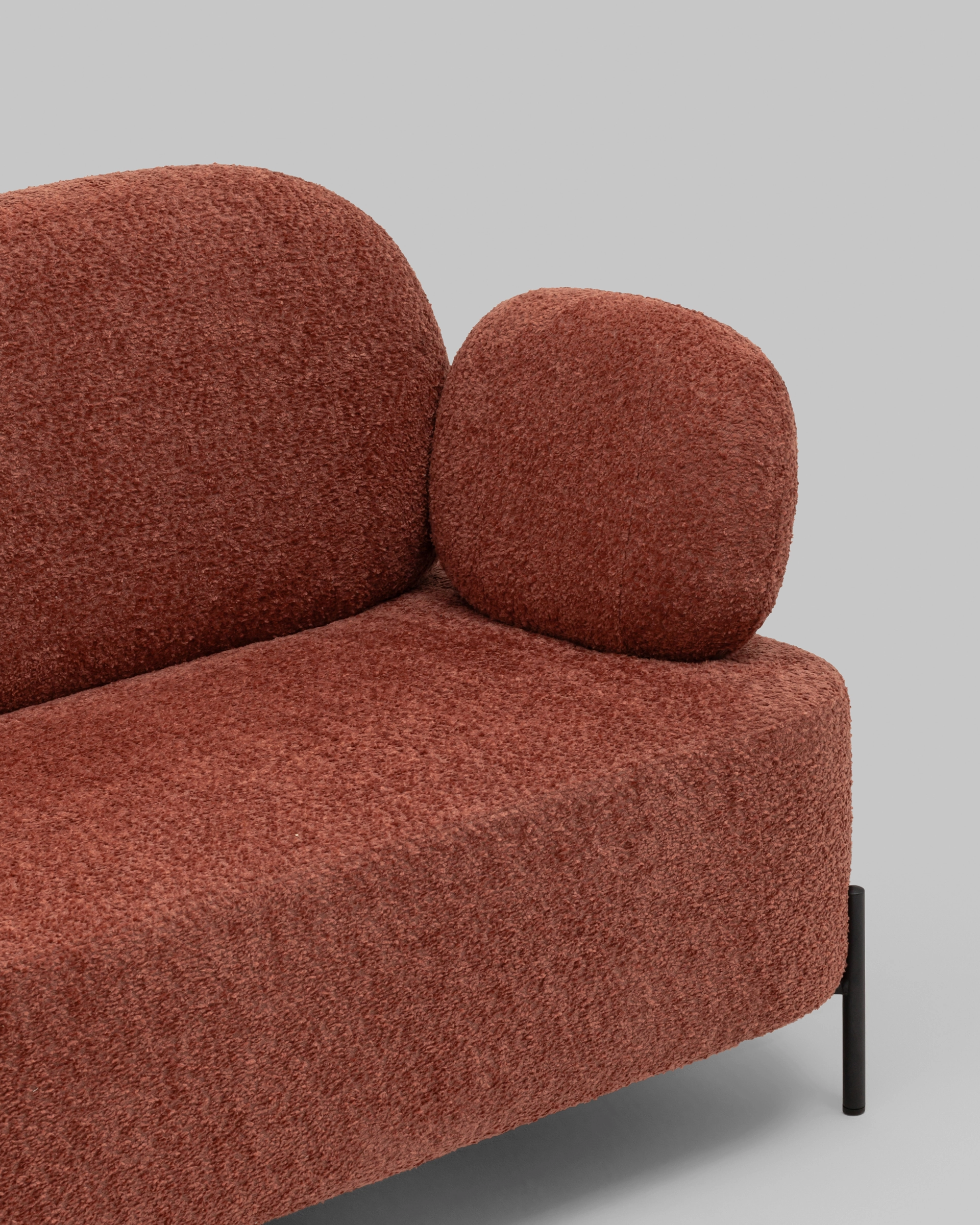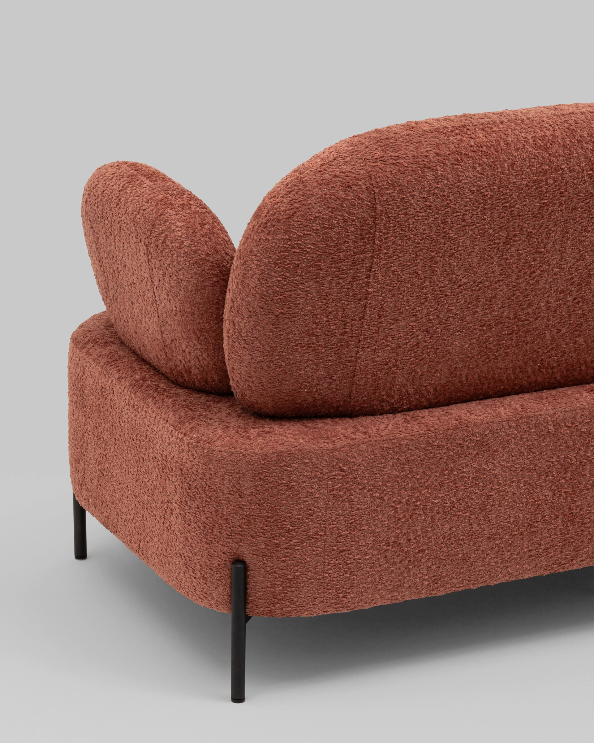 Мягкий диван Кэнди имеет оригинальный стиль исполнения и способен стать частью любого современного интерьера. Эргономичный дизайн спинки и подлокотников обеспечит долгий и комфортный отдых. Обивка выполнена из простого в уходе букле – мягкого и нежного на ощупь. В качестве внутреннего наполнителя использован ППУ повышенной жесткости. Эластичные ремни в основании обеспечивают плавное погружение и комфорт при посадке. Каркас металлический с максимальной допустимой нагрузкой до 170 кг. Ножки выполнены в черном цвете и оснащены специальными подпятниками, которые препятствуют скольжению и предотвращают царапанье напольного покрытия.