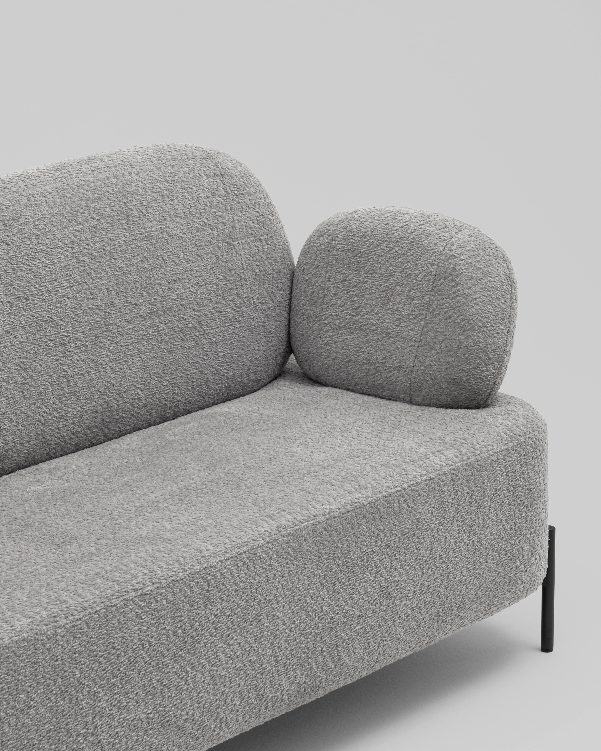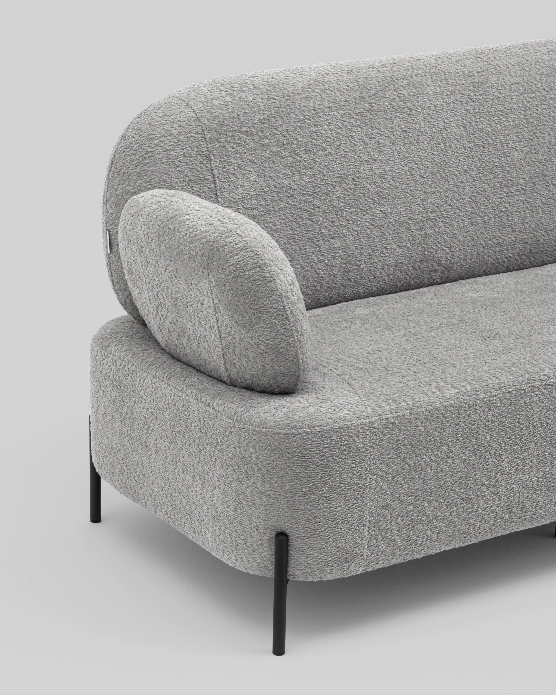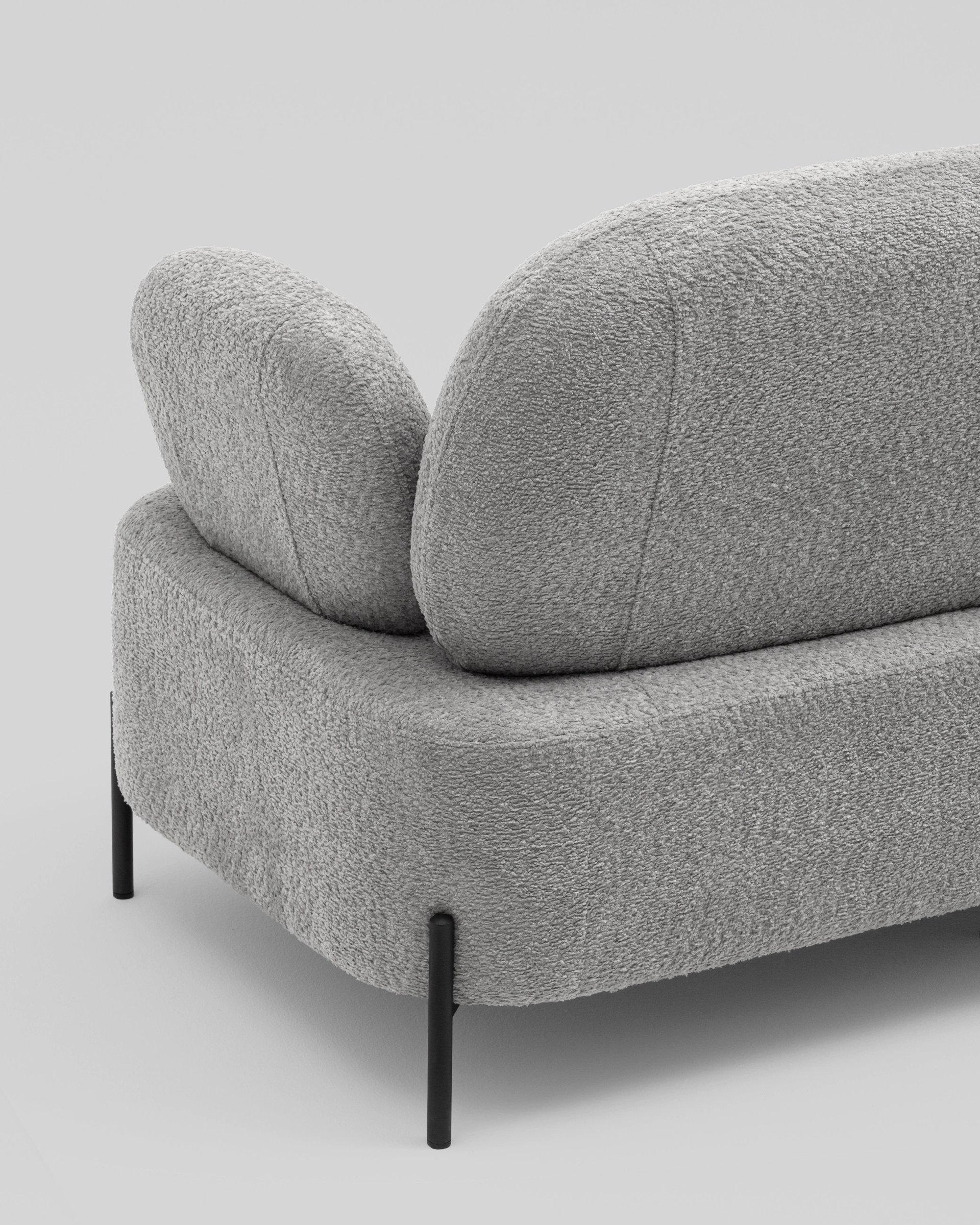 Мягкий диван Кэнди имеет оригинальный стиль исполнения и способен стать частью любого современного интерьера. Эргономичный дизайн спинки и подлокотников обеспечит долгий и комфортный отдых. Обивка выполнена из простого в уходе букле – мягкого и нежного на ощупь. В качестве внутреннего наполнителя использован ППУ повышенной жесткости. Эластичные ремни в основании обеспечивают плавное погружение и комфорт при посадке. Каркас металлический с максимальной допустимой нагрузкой до 170 кг. Ножки выполнены в черном цвете и оснащены специальными подпятниками, которые препятствуют скольжению и предотвращают царапанье напольного покрытия.