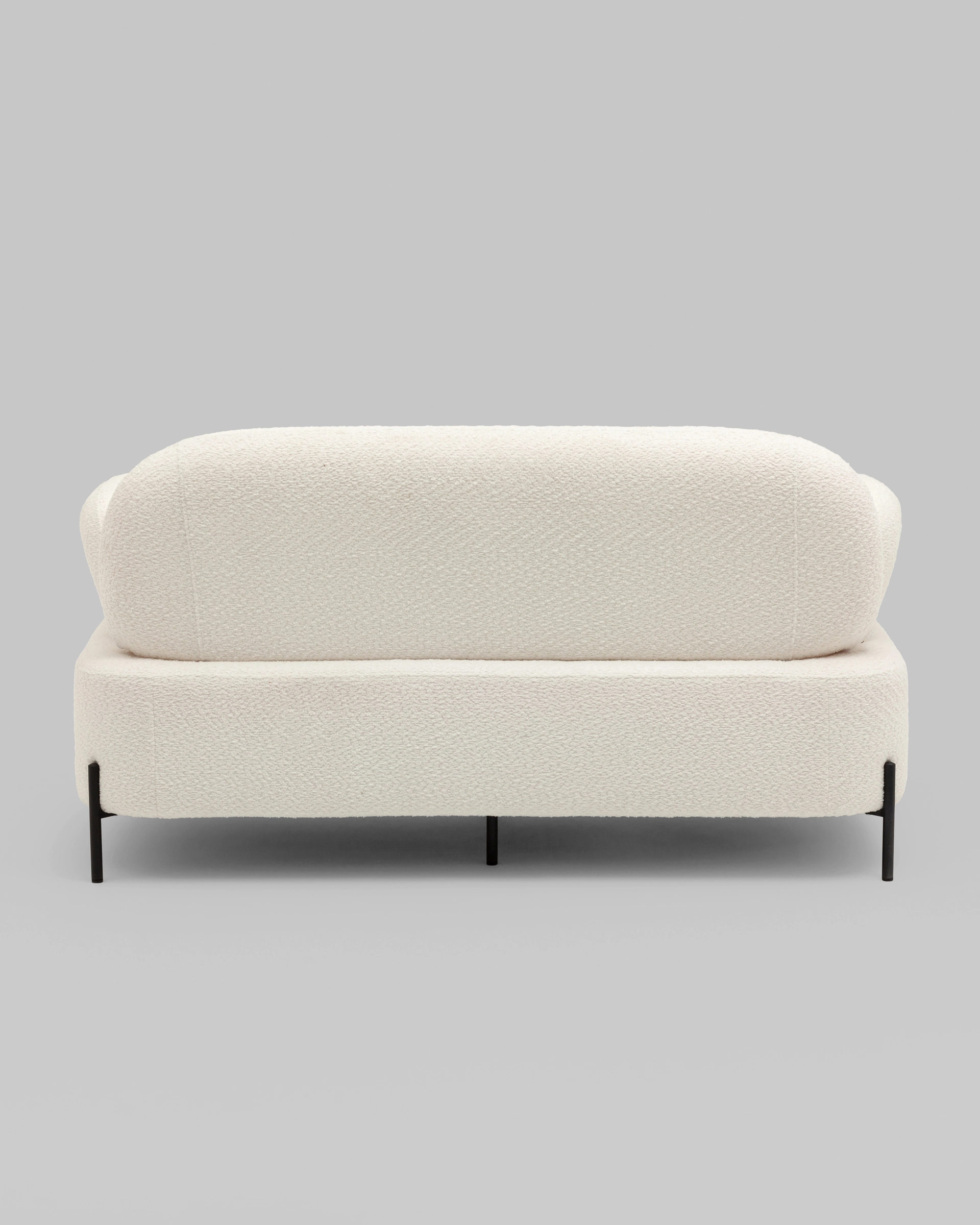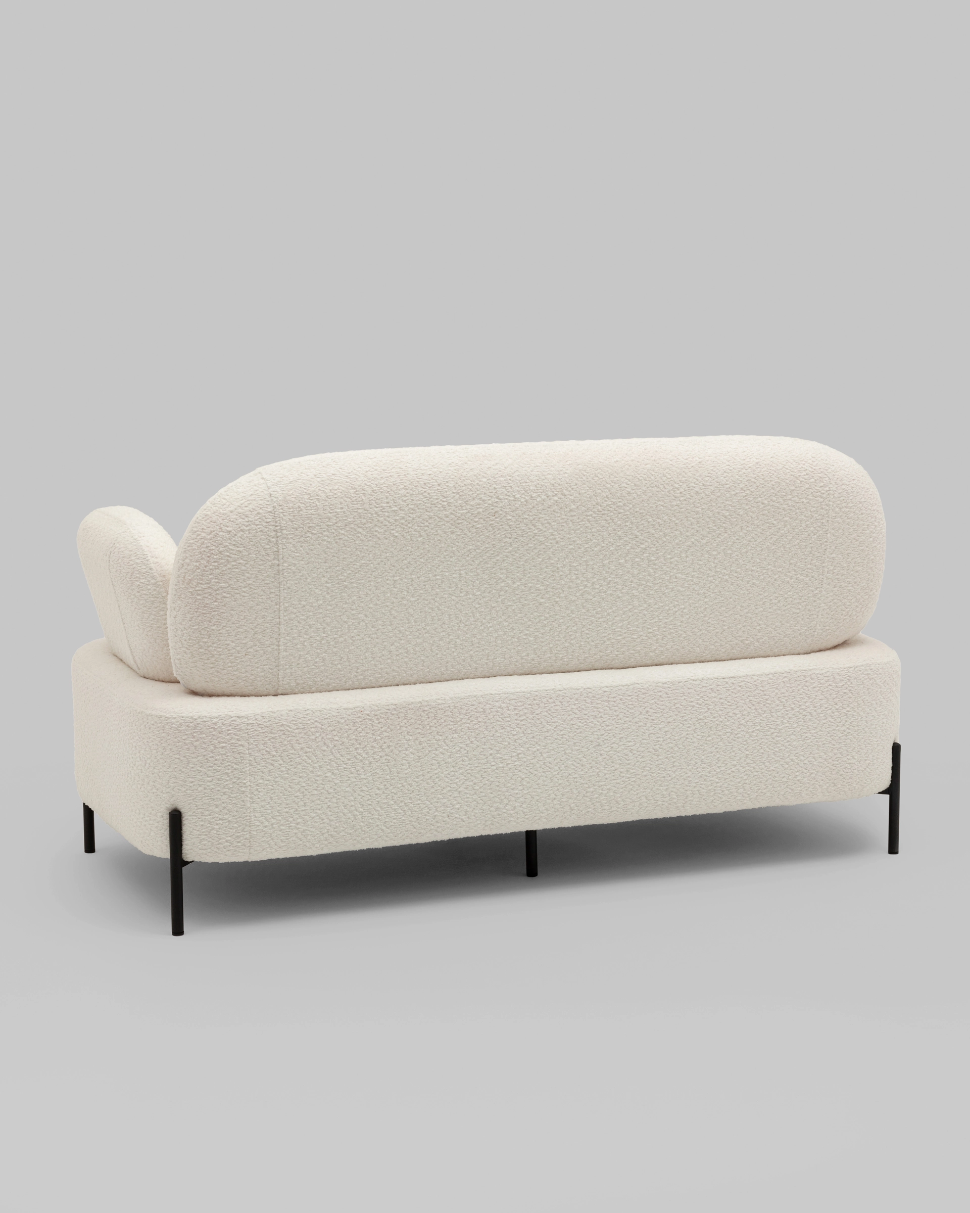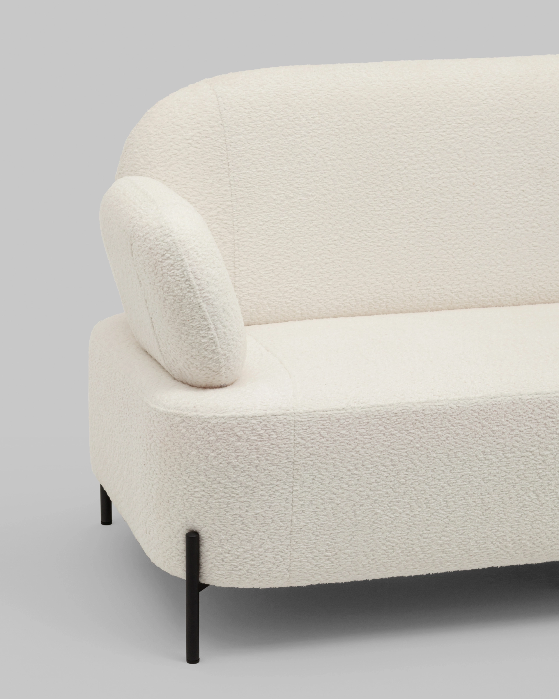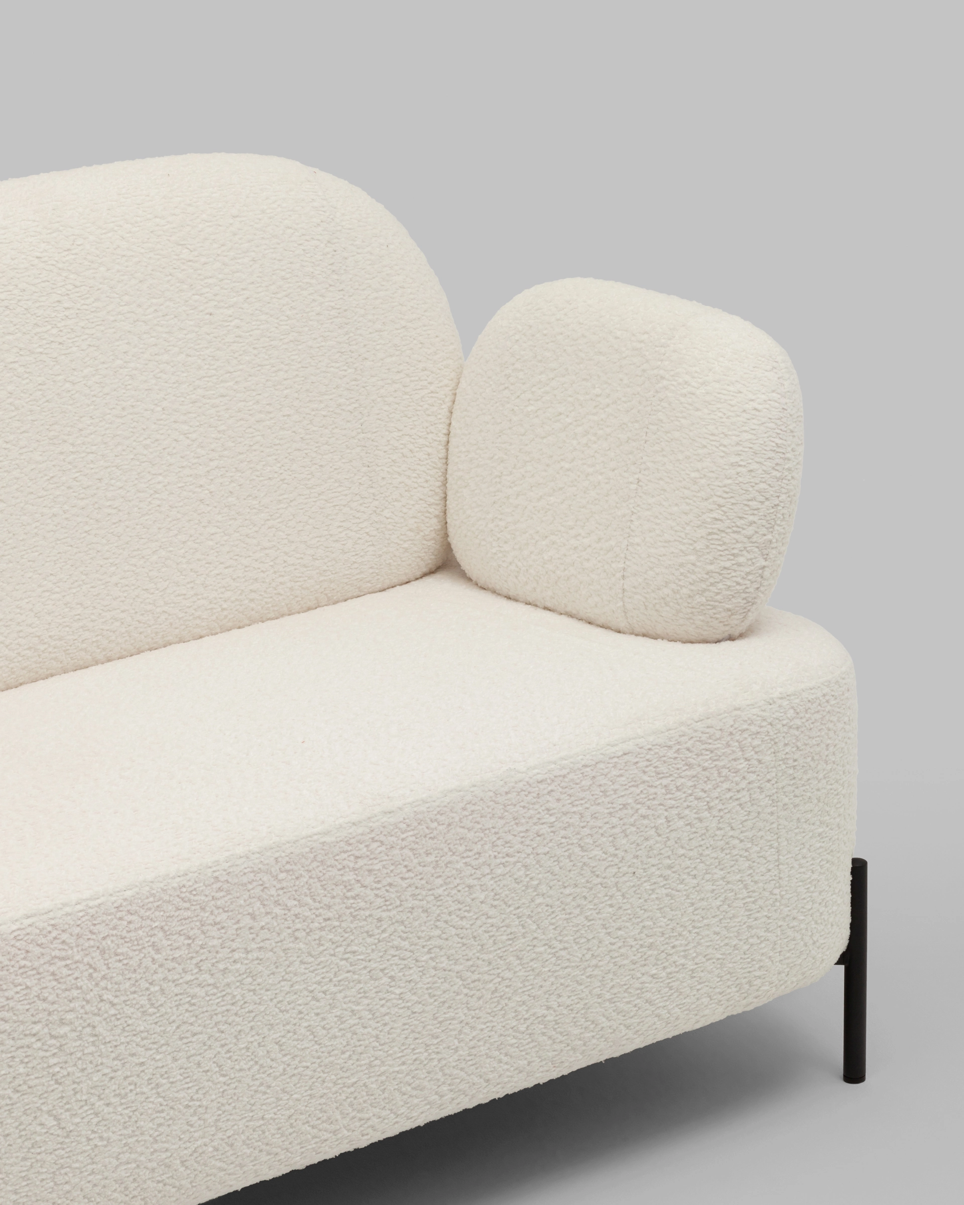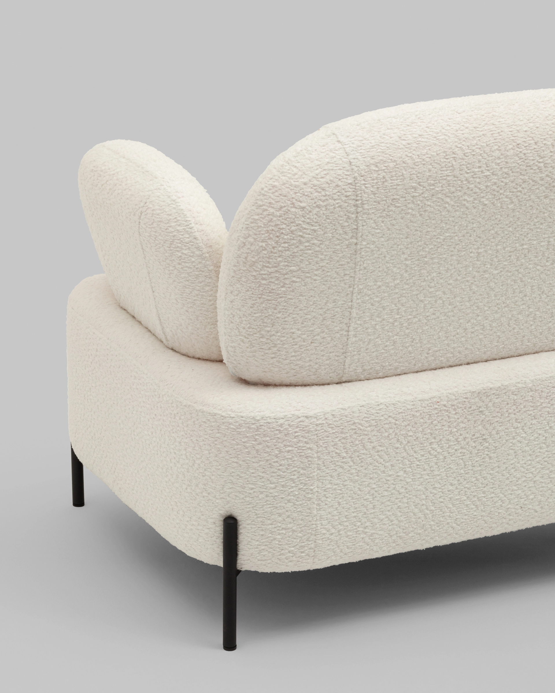 Мягкий диван Кэнди имеет оригинальный стиль исполнения и способен стать частью любого современного интерьера. Эргономичный дизайн спинки и подлокотников обеспечит долгий и комфортный отдых. Обивка выполнена из простого в уходе букле – мягкого и нежного на ощупь. В качестве внутреннего наполнителя использован ППУ повышенной жесткости. Эластичные ремни в основании обеспечивают плавное погружение и комфорт при посадке. Каркас металлический с максимальной допустимой нагрузкой до 170 кг. Ножки выполнены в черном цвете и оснащены специальными подпятниками, которые препятствуют скольжению и предотвращают царапанье напольного покрытия.