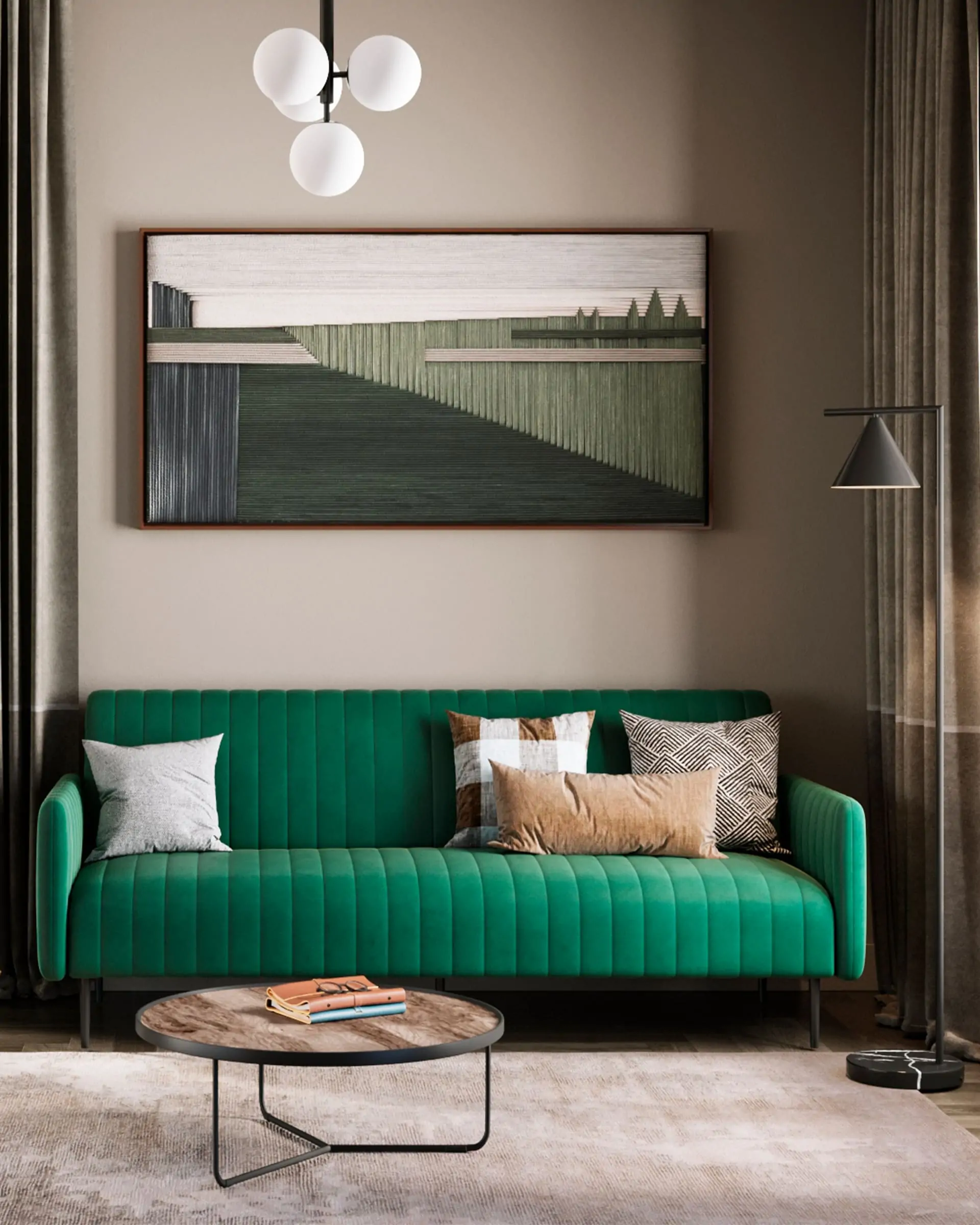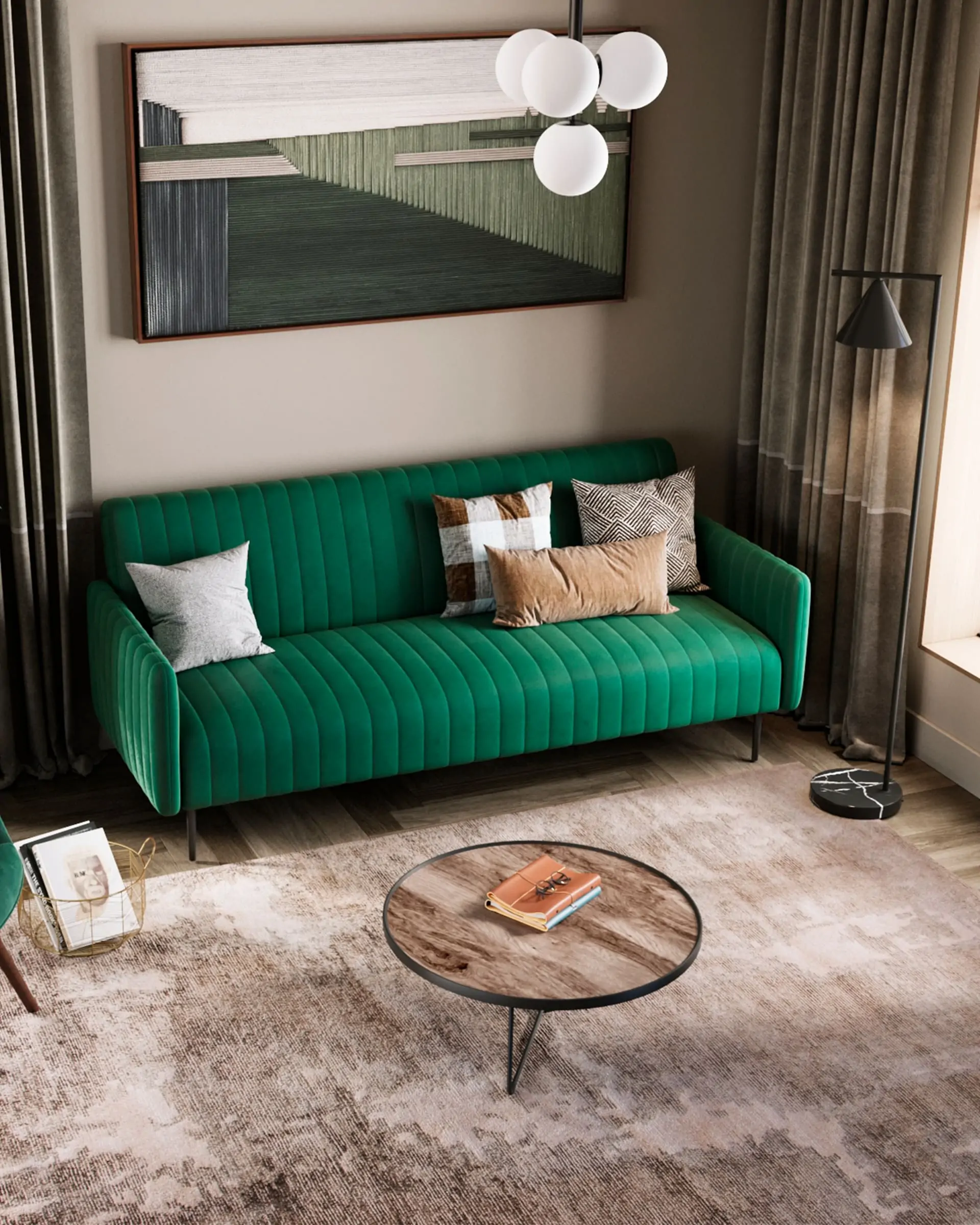 Современный диван Дрезден в лаконичном исполнении. Округлые формы и мягкая велюровая обивка делают модель максимально уютной и комфортной. Вертикальная строчка прекрасно дополняет образ и создает особенный вид.