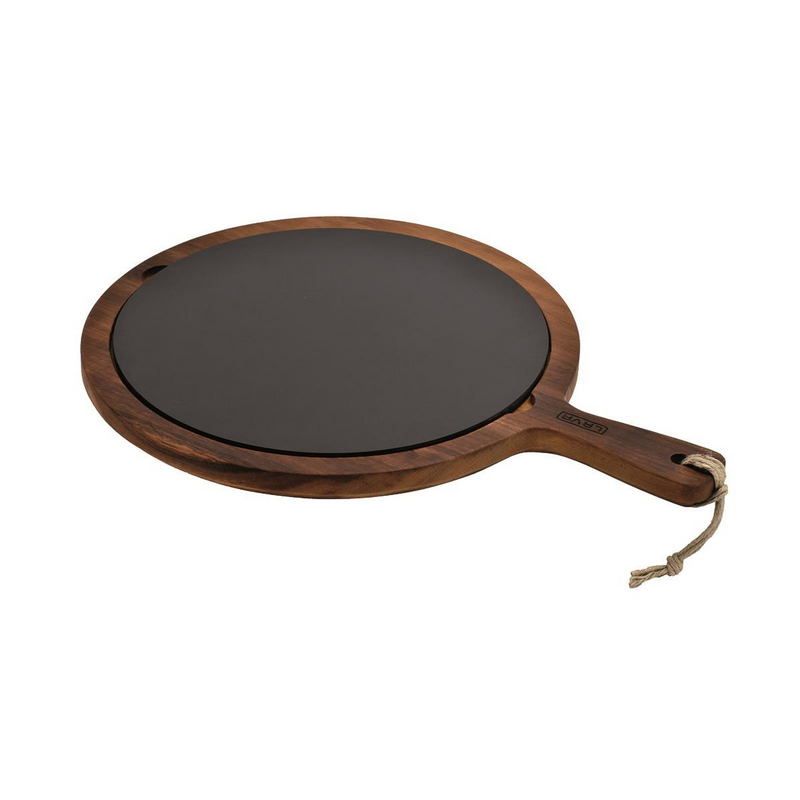 Доска для подачи LAVA d310 мм деревяннаяпредназначена для оснащения пунктов общественного питания. Изделие позволяет оригинально подать горячие блюда, закуски, нарезки, сеты. Доска станет интересной альтернативой подносам. Корпус изделия выполнена из прочного дерева, присутствует чугунная вставка. В конструкции предусмотрена удобная рукоятка. Диаметр рабочей части изделия – 310 мм.