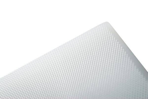 Изделие прямоугольной формы, с нескользящей рабочей поверхностью, выполнено из пищевого полимера высокой плотности. Доска белого цвета рекомендуется для работы с молочными продуктами и выпечкой.