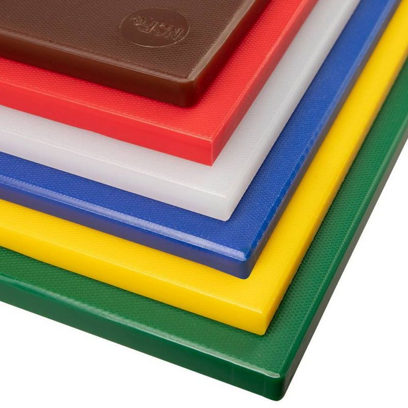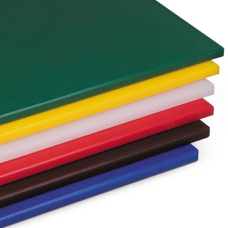 Доска имеет прямоугольную форму и рифленые поверхности, изготовлена из толстого пищевого полипропилена. Гастрономическая цветокодировка рекомендует доски зеленого цвета использовать для нарезания овощей и фруктов.