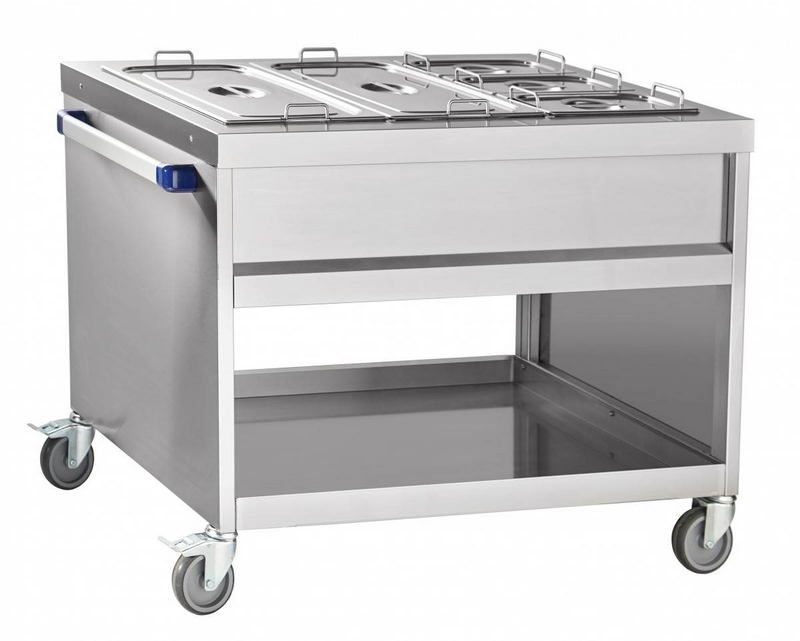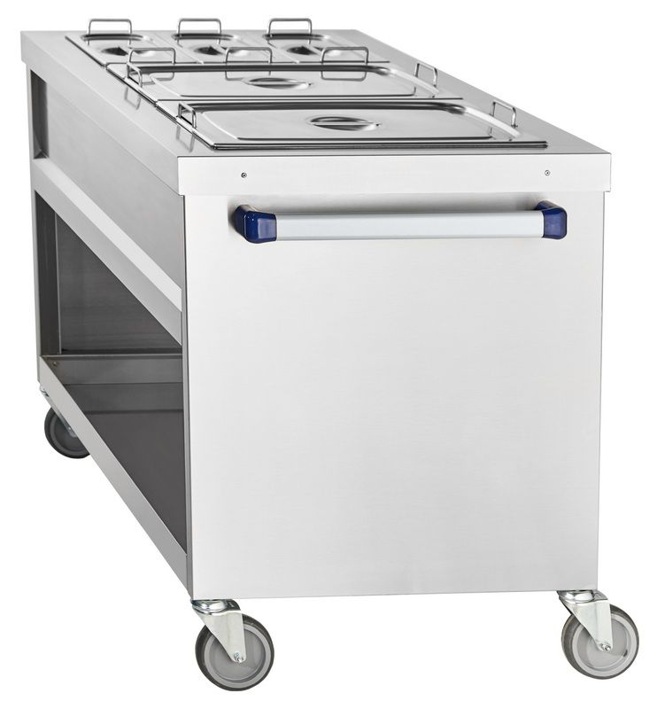 - Вариант с колесами особенно удобен при организации «мобильного» питания в гостиницах, ресторанах и организации буфетов и «шведских столов».