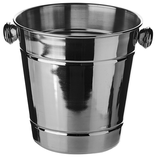 - Серебряное ведерко для льда имеет минималистичный дизайн.