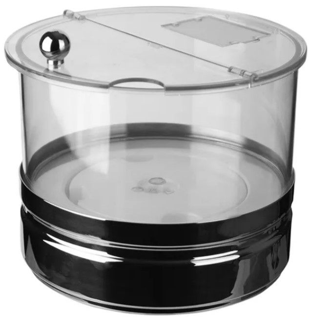 Емкость для закусок APS 4000 мл, D 240 мм, H 190 ммпредназначена для оснащения торговых точек, пунктов общественного питания, а также домашнего использования. Модель отлично подходит для хранения снэков, небольших закусок и конфет Емкость вмещает в себя 4 л. Основание выполнено из нержавеющей стали.