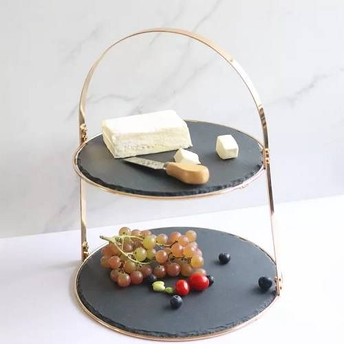 Этажерка MGSteel d32/34,5 см, h35 см черная, сланец 2-х ярусная /1/
