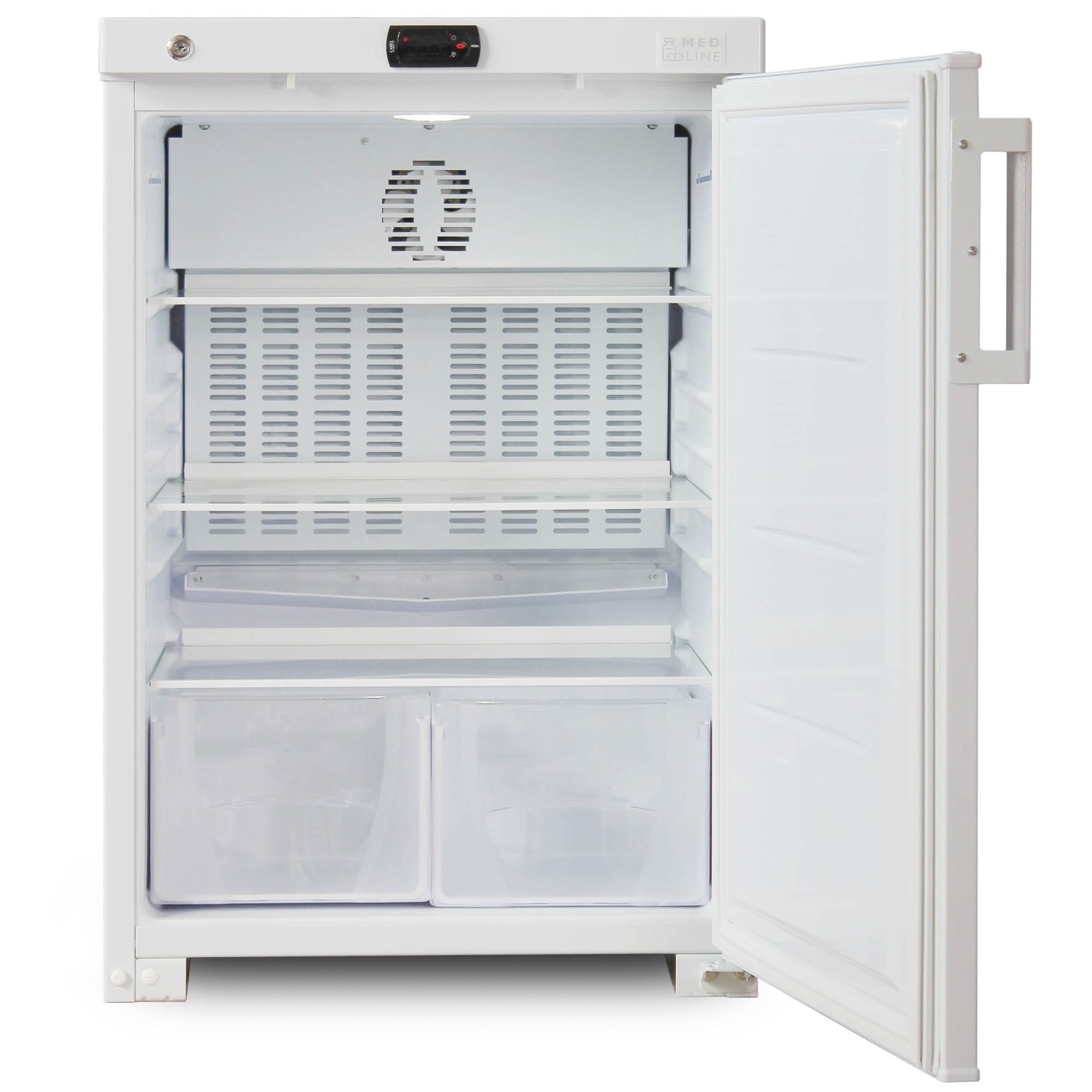 Холодильник 150К-Gс глухой дверкой — самая компактная модель в линейке медицинских холодильных шкафов производства завода «Бирюса» (г.Красноярск). С помощью электронного контроллера вы можете выставить температуру от +2 до +15°С, соответствующую требованиям хранения определенных лекарственных препаратов. Заданная температура будет максимально точно поддерживаться благодаря сверхчувствительному датчику температуры. Все эти преимущества делают данную модель пригодной для использования в аптеках и медицинских учреждениях. Оборудование имеет необходимую для этого документацию: декларацию о соответствии, регистрационное удостоверение. Дверка имеет механический замок, который пригодится в случае ограниченного доступа к лекарственной продукции. Система охлаждения включает в себя вентилятор обдува, обеспечивающий равномерное охлаждение всего внутреннего объема. В комплект входят светодиодная лампа, не влияющая на заданный температурный режим, 4 полки из закаленного стекла. Допускается эксплуатацияхолодильника Бирюса 150К-Gпри температуре окружающей среды до +35°С.