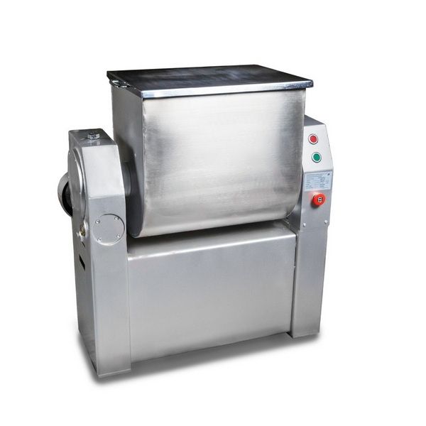 Вместимость данного аппарата 50 литров (объем), но рекомендуемая разовая загрузка должна составлять не более 70% от этого объема, то есть 35 кг. Конструкция включает станину, дежу с крышкой, редуктор и механический выгружной механизм. Все элементы, соприкасающиеся с пищевыми продуктами, выполнены из высококачественной нержавеющей стали. Спиральный месильный орган с расположенными на нем лопатками обеспечивает тщательное, равномерное перемешивание компонентов и получение фарша однородной консистенции.