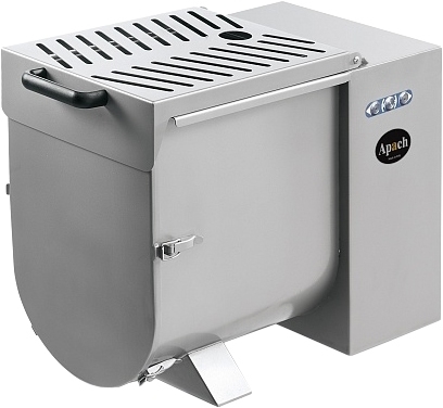 Apach Cook Line AMK50 1Ф. представляет собой электрическую напольную фаршемешалку. Модель предназначена для оснащения пунктов общественного питания, торговых точек, рассчитан на перемешивание измельченного мяса, рыбы до однородной смеси. В конструкции применяется устройство лопастного типа, оно обеспечивает фарш с однородной консистенцией. В фаршемешалке предусмотрена крышка с микровыключателем, присутствует функция реверса. Для изготовления корпуса и съемной лопасти применяется нержавеющая сталь.
