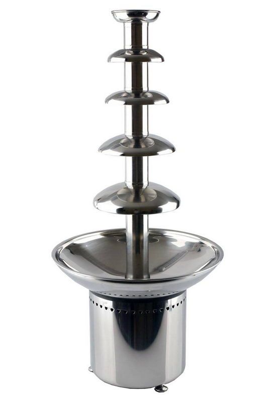 Фонтан состоит из цилиндрического основания, чаши для растопленного шоколада и 5-уровневой полой башни. В основание встроены двигатель и нагревательный элемент, снизу предусмотрены регулируемые ножки. Чаша рассчитана на 8 кг шоколада, он может быть кусковым или уже расплавленным. В центре чаши крепится башня со шнеком внутри, который доставляет шоколад кверху. На боковой поверхности основания установлена панель управления с кнопкой запуска, индикатором сети и регулятором температур. Все элементы прибора выполнены из полированной нержавеющей стали.