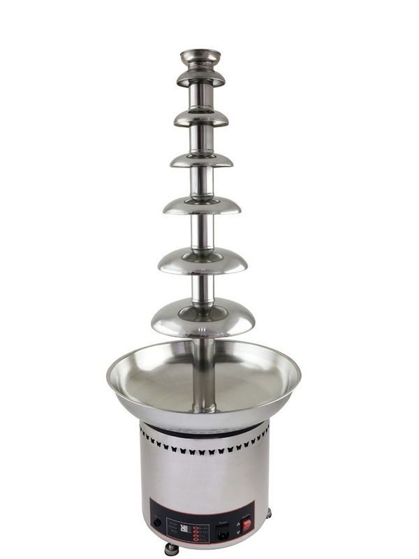 Kocateq DHC7FDCпредставляет собой шоколадный фонтан. Оборудование предназначено для нагрева горячего шоколада и его подачи, оно прекрасно подходит для оснащения пунктов общественного питания, торговых точек и так далее. Модель рассчитана на 6 литров, в конструкции предусмотрено 7 уровней. Корпус фонтана и шнек выполнены из нержавеющей стали марки AISI304. В конструкции предусмотрена электронная панель управления с кнопками включения мотора, нагрева и поворотным регулятором температуры. Нагрев может быть отрегулирован в диапазоне от 30 до 150 град.