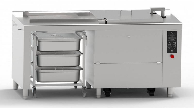 - перфорированная корзина типоразмера GN 2/1 (есть система открытия дна, предохранительный стопор, изолированная ручка).