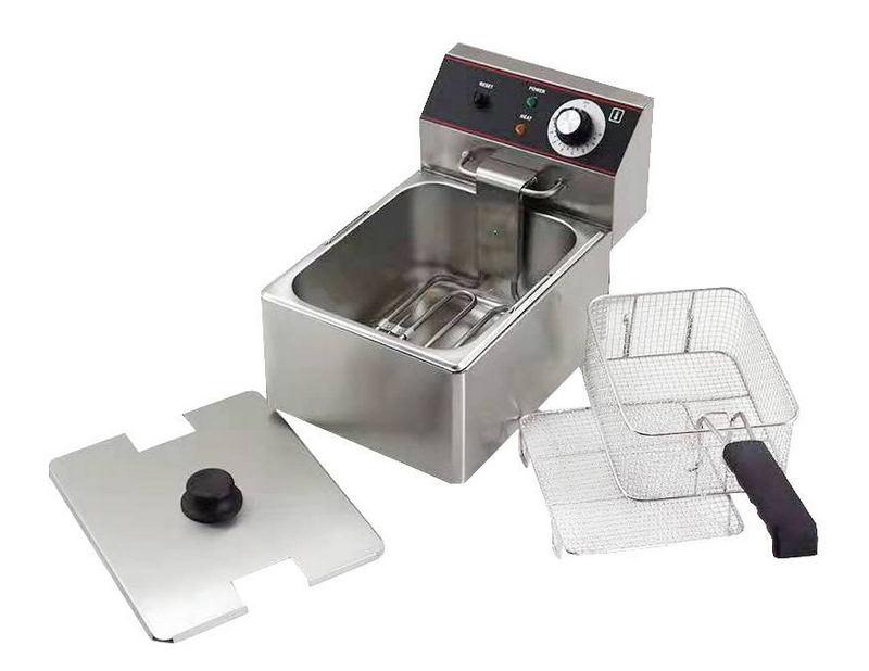 Kocateq EF81NWпредставляет собой электрическую фритюрницу профессионального класса. Аппарат предназначен для использования в сфере торговли, общественного питания. Он рассчитан на приготовления в разогретом масле или жире разнообразных блюд. Для этого предусмотрена ванна для масла объемом 8 литров. В нее погружается сетчатая корзина для продуктов. На корпусе установлена панель управления с поворотным регулятором-термостатом, он позволяет задать нагрев в диапазоне от 30 до 200 градусов. Дополнительно предусмотрен защитный термостат, отключающий напряжение при поломке основного. Корпус и резервуар для масла изготовлены из прочной нержавеющей стали марки AISI201. Толщина металла на корпусе составляет 0.55 мм, толщина ванны равна 0.7 мм.