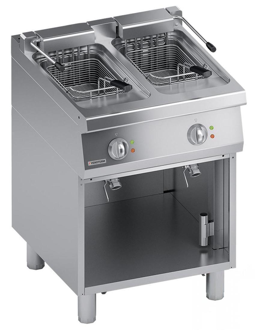 Фритюрница электрическая VEROTERM VT7FEE1015– предназначена для предприятий общественного питания. Оборудование выполнено из нержавеющей стали AISI 430. Толщина металла 1 мм. Фритюрница оснащена емкостью для масла, фильтром из нержавеющей стали. Корзины входят в комплект. Фритюрница на нейтральном шкафу с дверью.