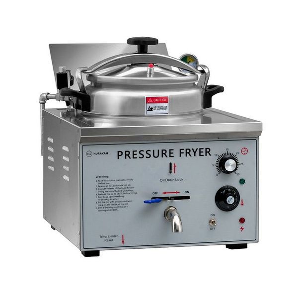 Фритюрница под давлением HURAKAN HKN-EPF16M— предназначена для обжаривания продуктов, таких как картофель, мясо, рыба, овощи и фрукты в кляре, в разогретом до определенной температуры растительном или животном масле. Продукт, приготовленный во фритюрнице под давлением более нежный, сочный и имеет более насыщенный вкус.